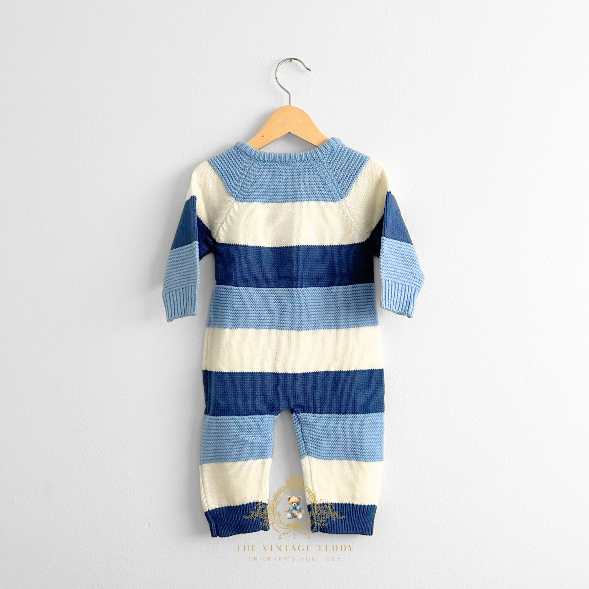 Baby Boys Knit One-Piece Bodysuit Sweater Romper Cornflower Blue & White Stripes