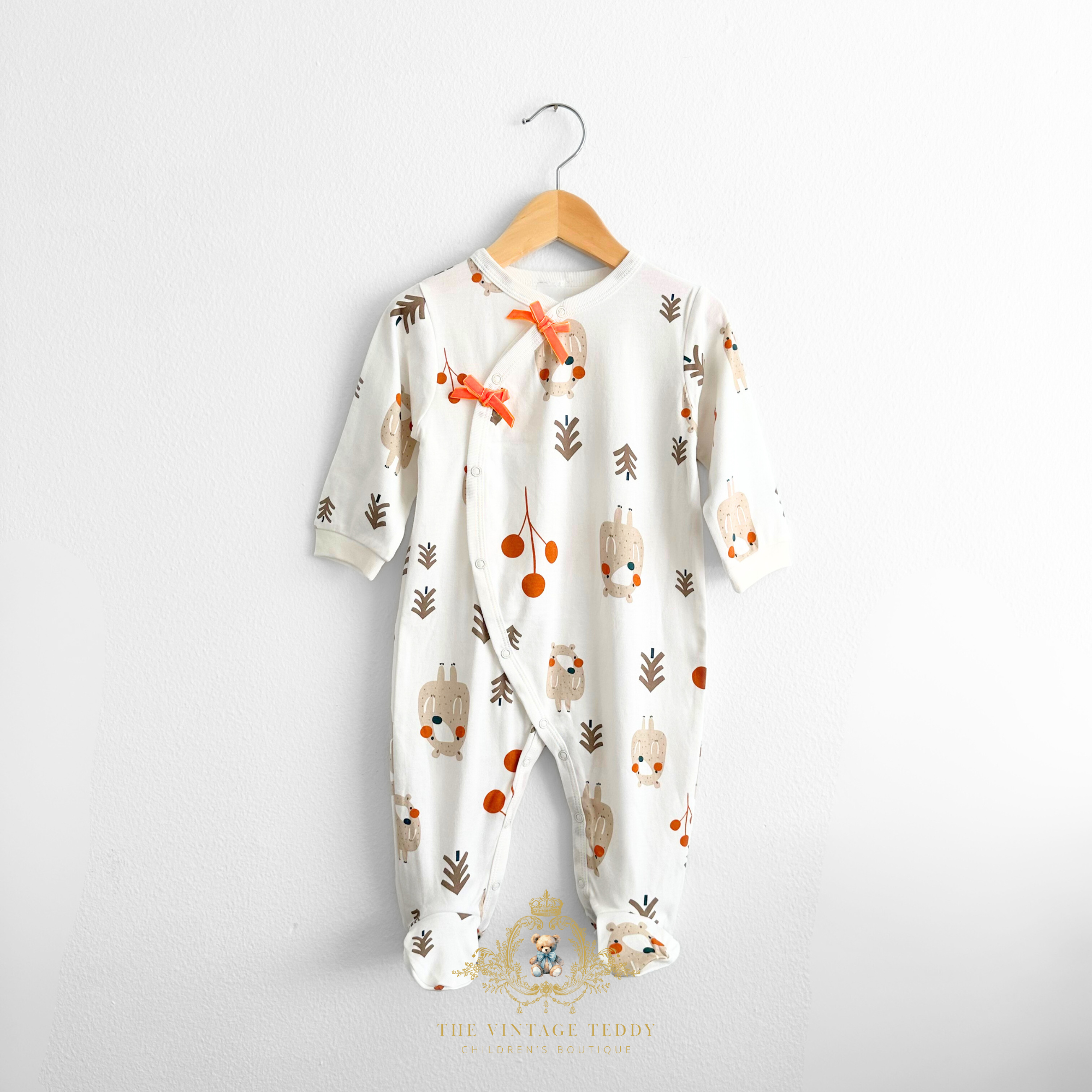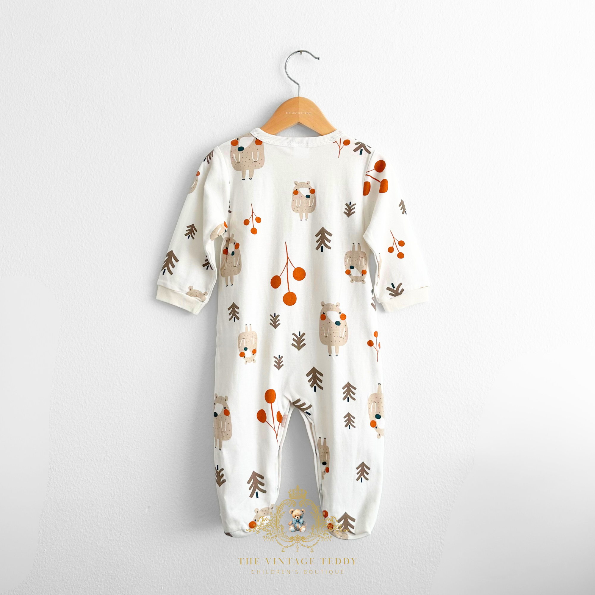 Our adorable unisex baby & toddler sleep and play pajamas are made from high-quality soft 100% cotton fabric, this cute one-piece bodysuits features an adorable woodland bear print design. Soft light-weight breathable and comfortable for all day or night wear. Designed to keep your little one cozy and snug, these long-footed pajamas are ideal for playtime adventures and peaceful nights.