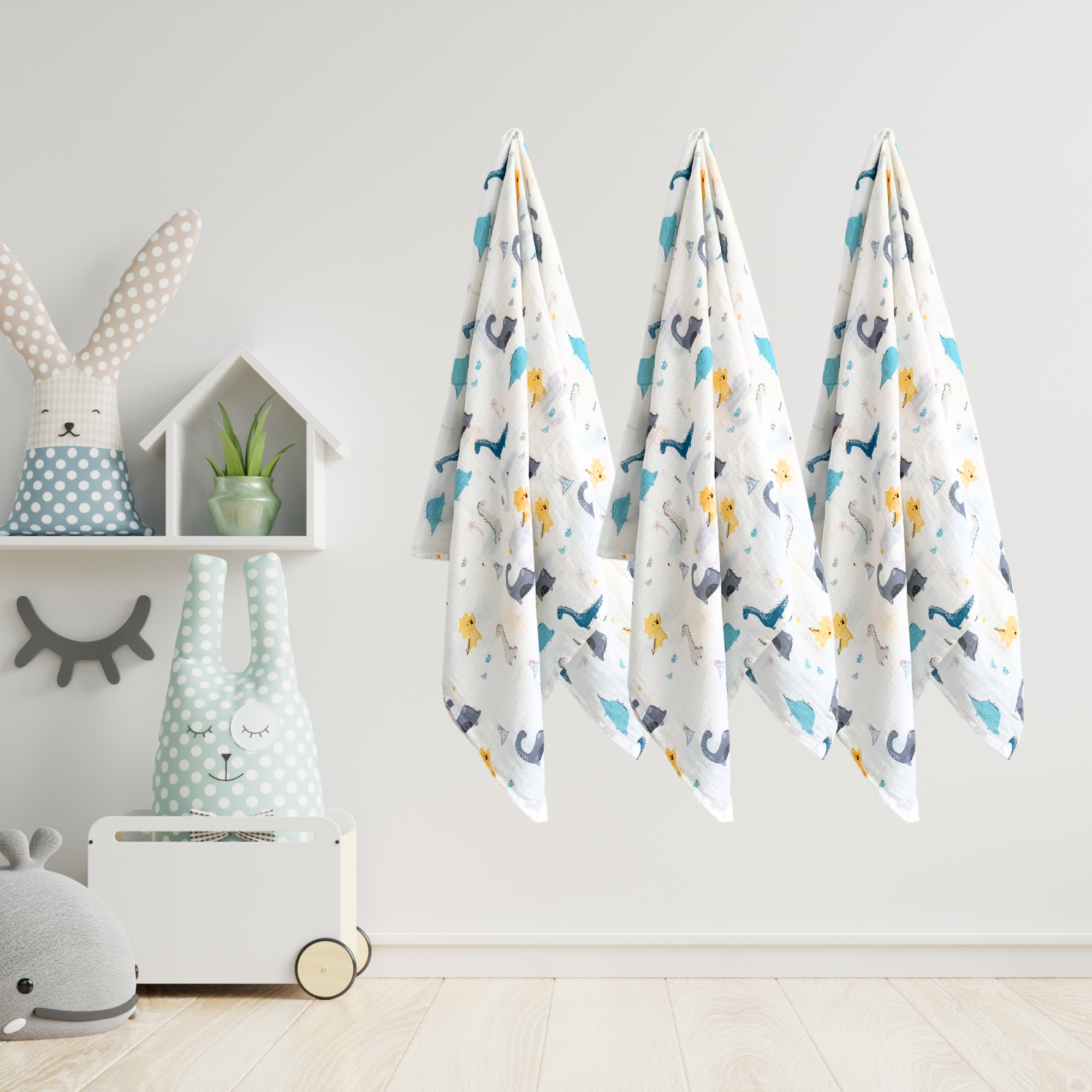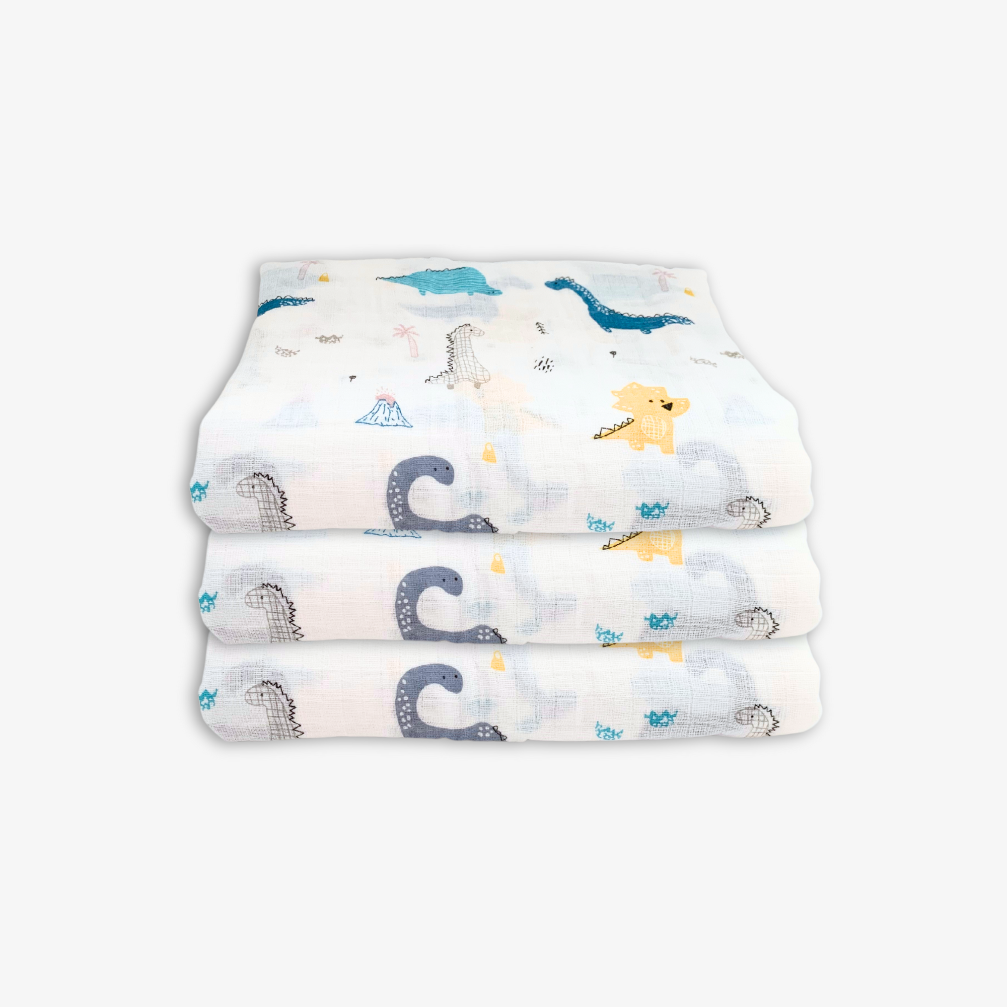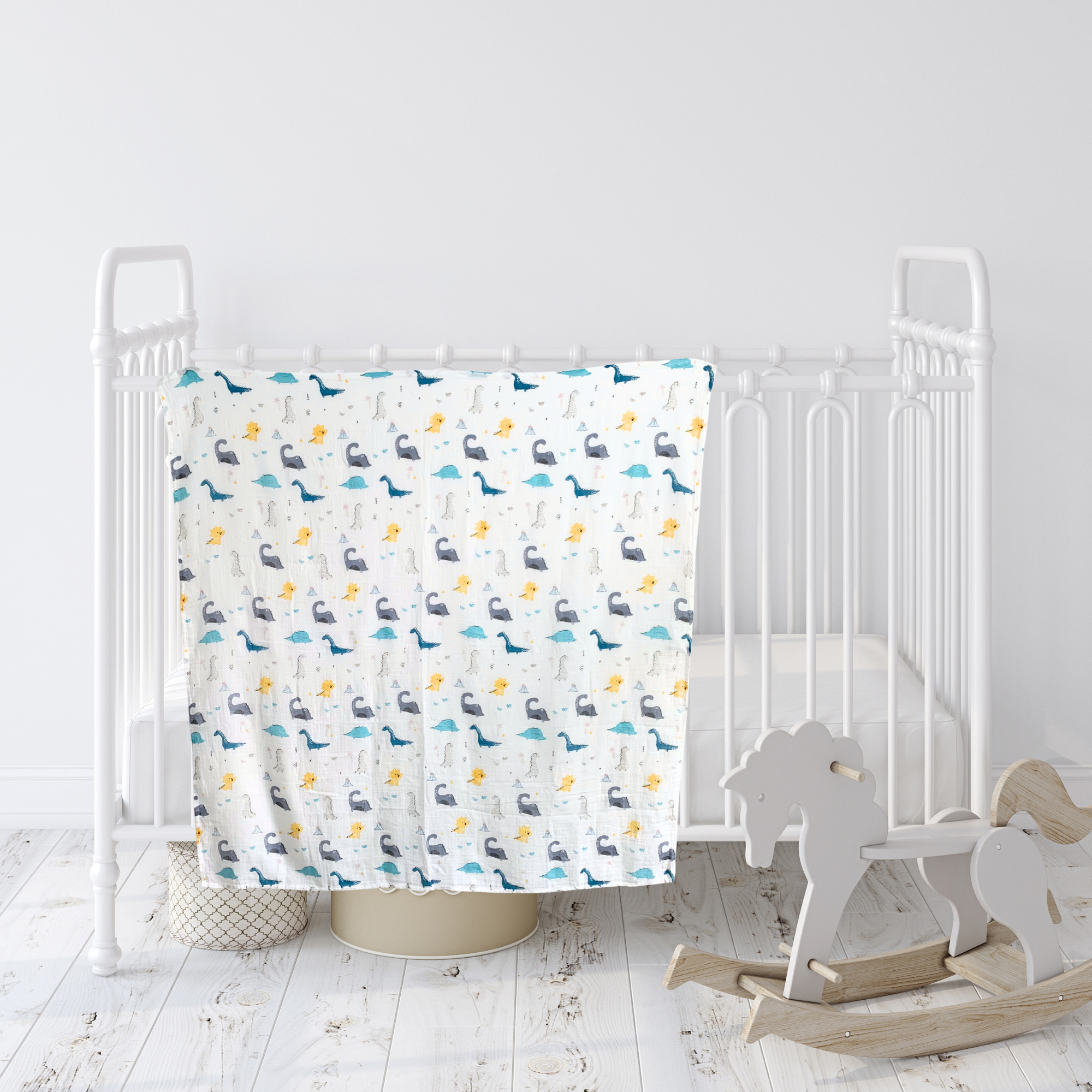 Baby Swaddling Receiving Blanket 100% Bamboo Cotton Muslin Dinosaurs