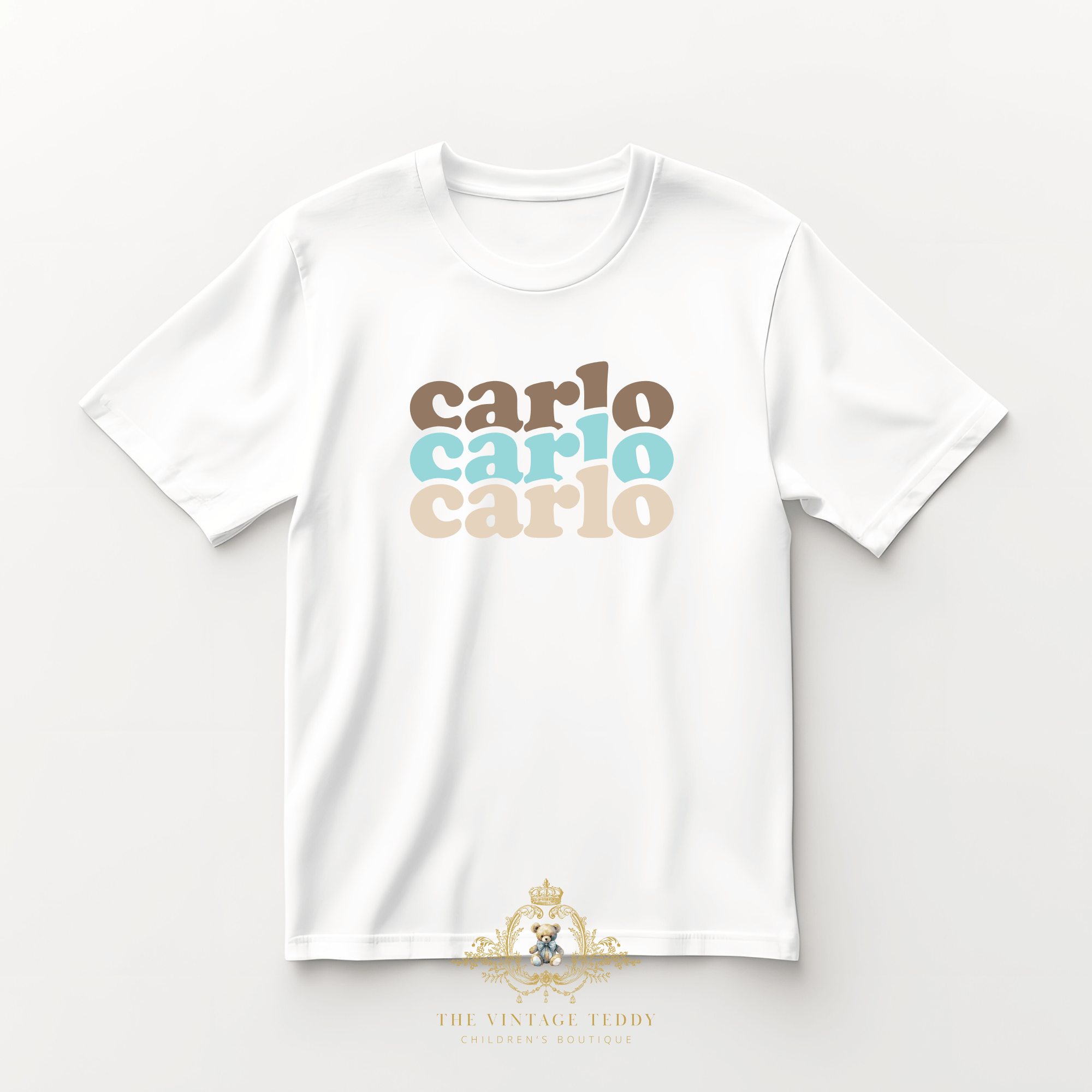 Cute Little Boys Graphic Tees Custom Personalization Child's Name Tri-Color Bold Font Kids T-Shirts