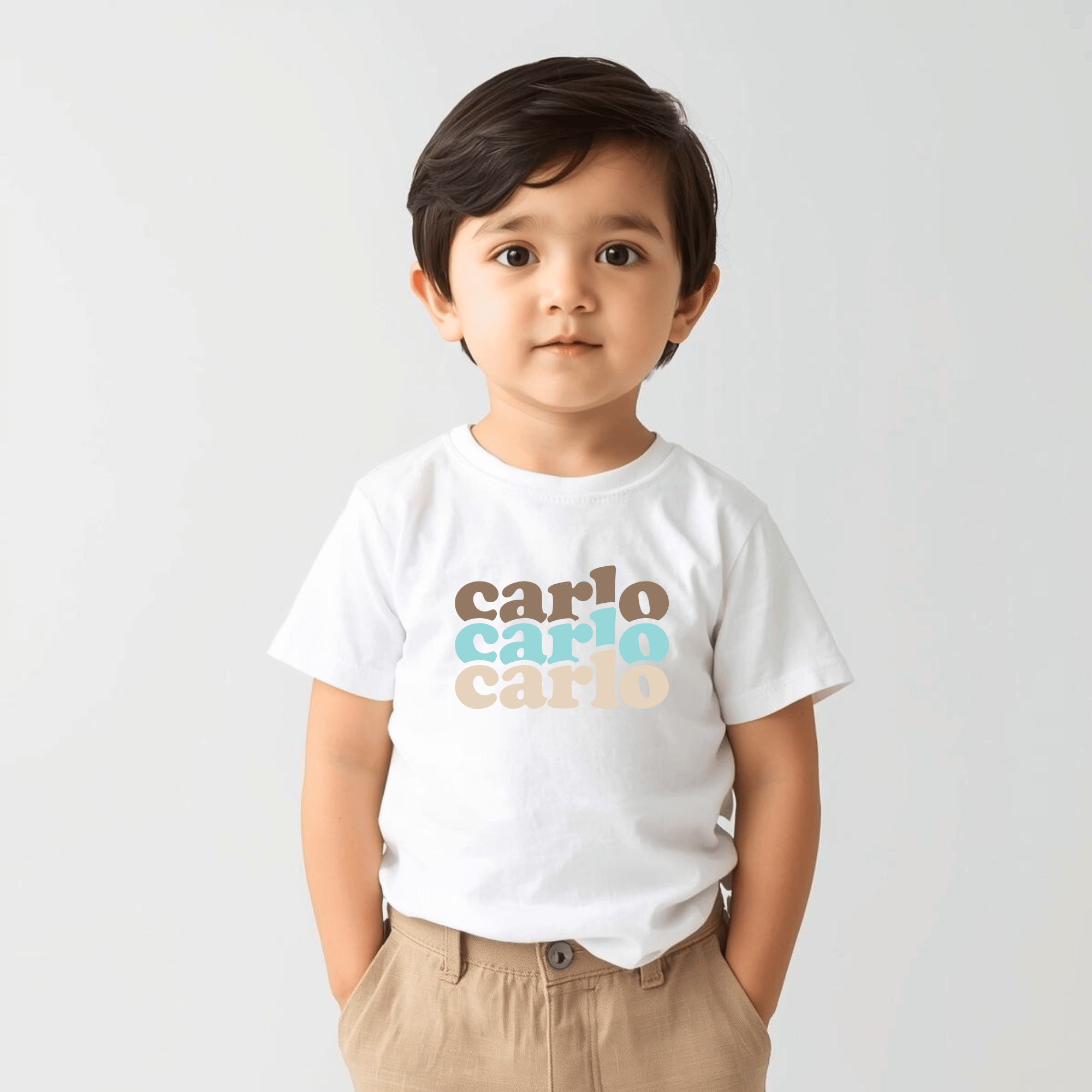 Let his personality shine with a custom graphic tee designed just for him! Featuring his name in a creative bold, tri-color lettering that really pops, this shirt is a fun way to celebrate what makes him unique. Built for comfort and durability, it's perfect for active little boys who love to play and have fun. Whether it's a birthday surprise, a special occasion gift or just because he deserves something uniquely his own, this personalized t-shirt is sure to become a favorite he'll love wearing.