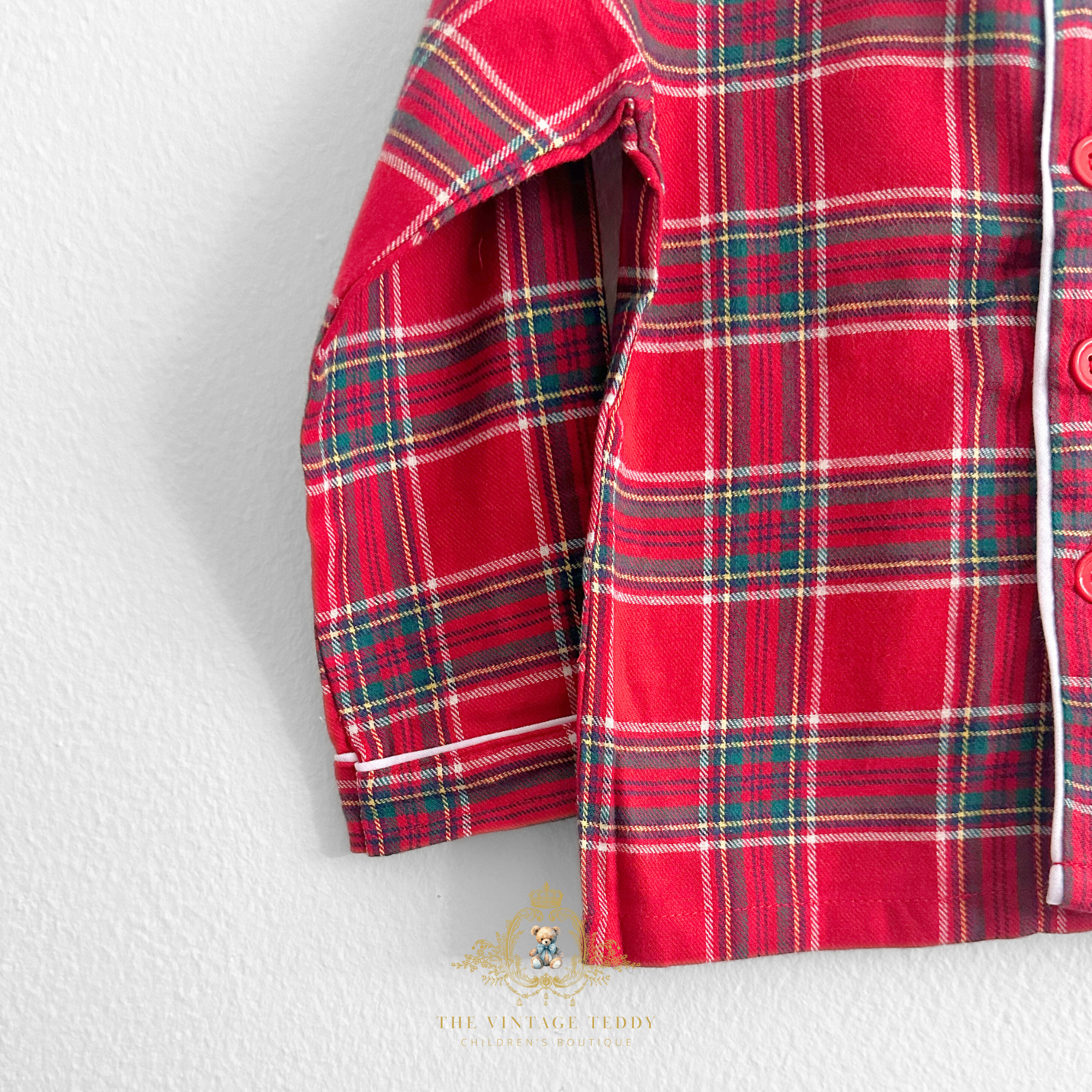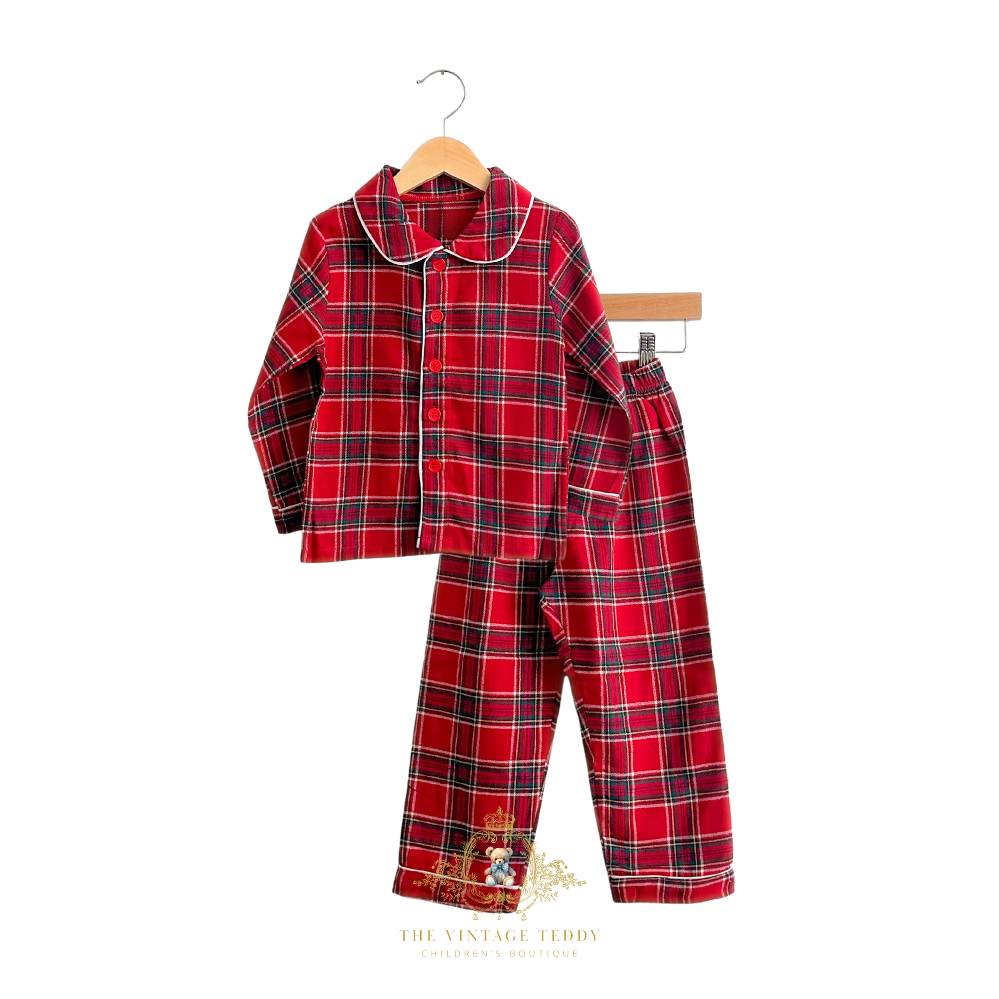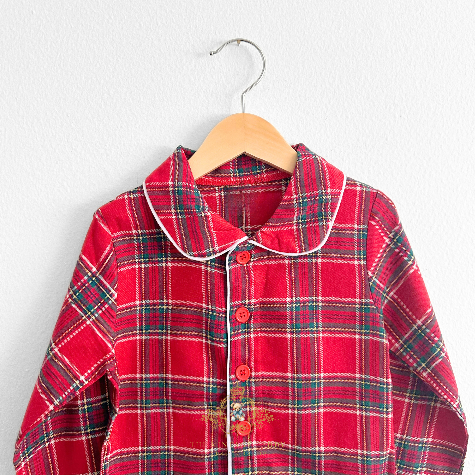 Let your little one drift off to a winter dreamland in cozy style with this charming holiday pajamas for boys. Featuring a classic red and green plaid pattern, this long-sleeve and long-pants pajamas combines festive flair with everyday comfort. With white trim detail that completes the design, making bedtime feel extra special. Perfect for holiday photos, sleepovers, or snuggling up with teddy on winter nights. Soft, breathable fabric keeps him comfortable all night long.