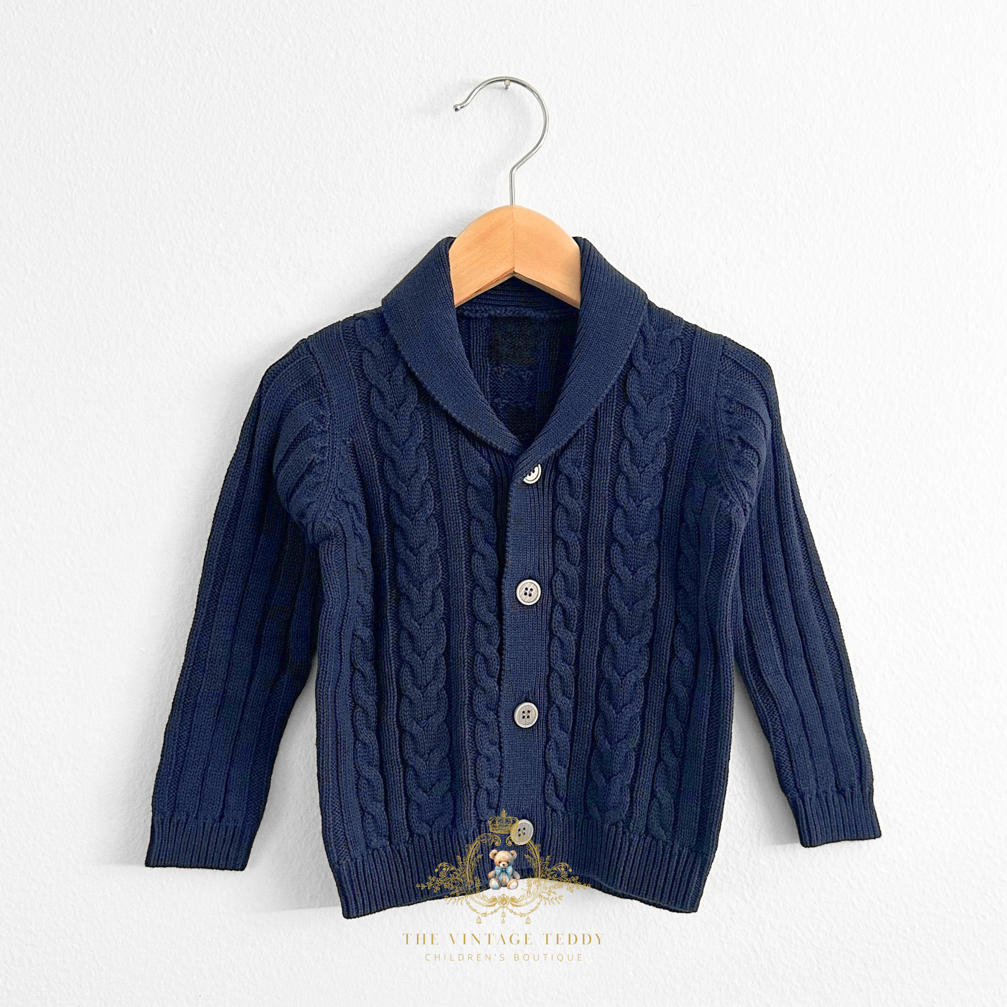 Wrap your little one in cozy comfort with this charming navy blue knit cardigan! Featuring a classic cable knit design, this long-sleeve sweater is perfect for layering on chilly days. The soft, warm fabric keeps kids comfortable whether they're playing indoors or heading out for adventures. Its timeless navy hue pairs effortlessly with any outfit, making it a versatile wardrobe essential. Durable and easy to care for, this cardigan brings both style and snuggle-worthy warmth to your little boy's collection.