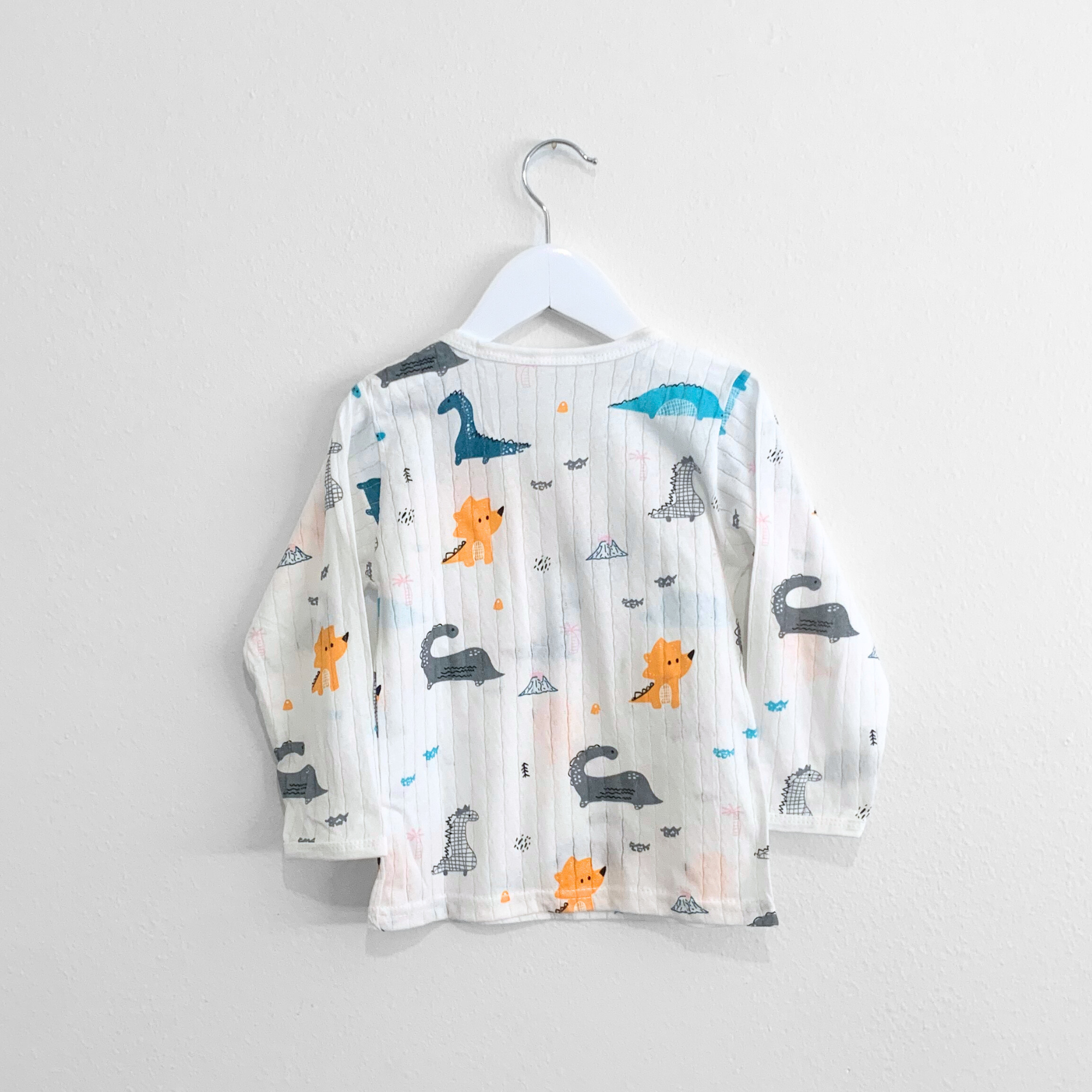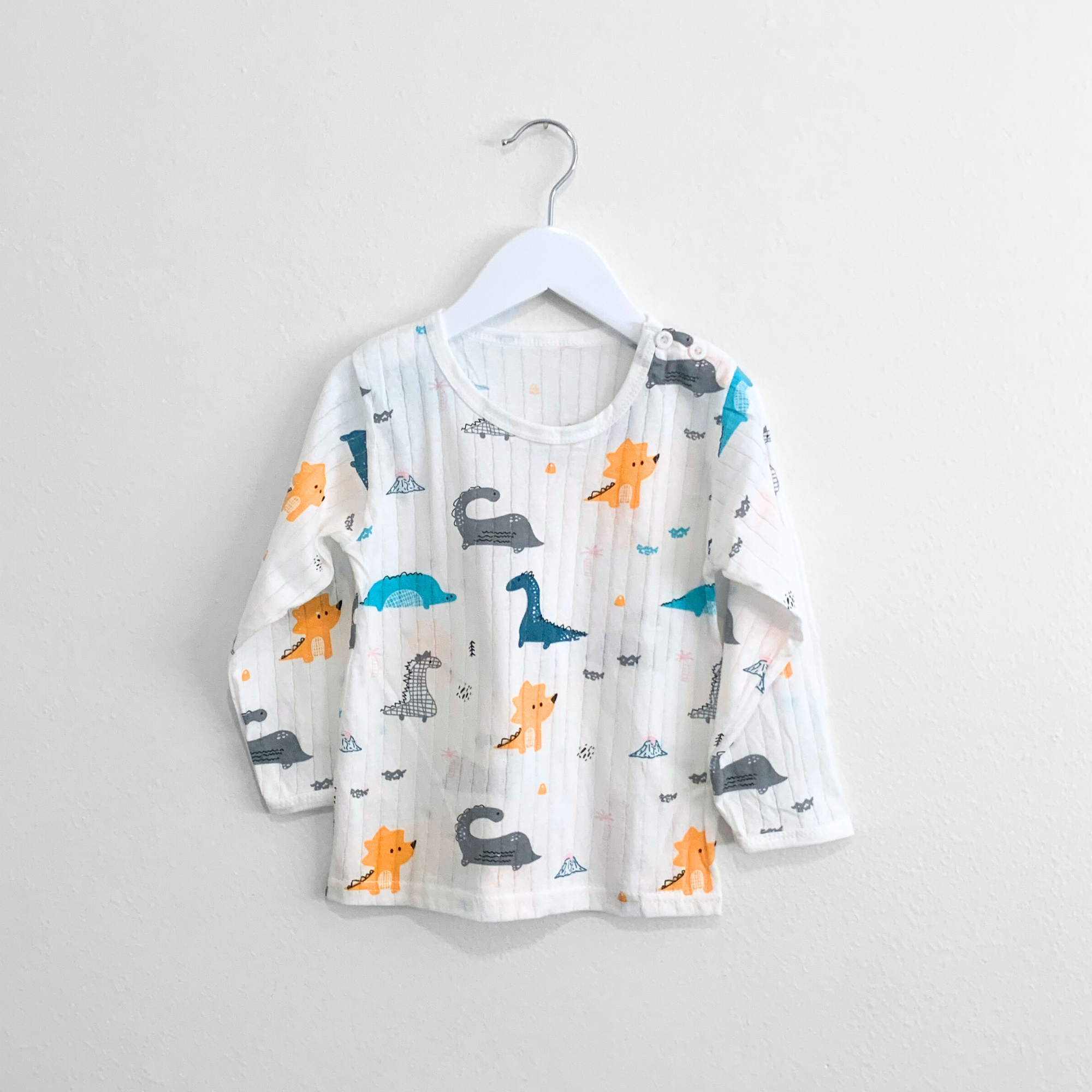 • Details: Soft, Breathable & Comfy, Dinosaurs Character Graphic Print, Long Sleeves, Long Pants, Round Neck Collar, Elastic Waistband