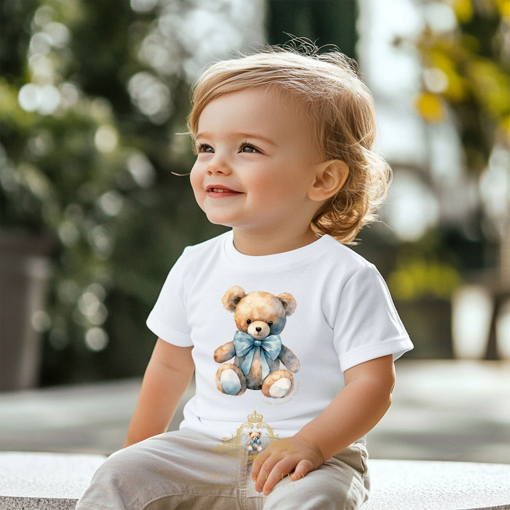 Dress your little one in playful charm with The Vintage Teddy’s Children’s Custom Graphic Tees. Featuring the cute and cuddly The Vintage Teddy's Teddy Bear, adorable  vintage-inspired watercolor illustration brand design. Made from soft light-weight fabric, perfect for everyday wear, these soft tees combine teddy bear flair with cozy comfort—perfect for keeping your little ones happy and stylish all day long, your little one will be the cutest at the playground! A fun way to add a little vintage-inspired magic to their everyday wardrobe! Join in on the fun and be part of The Vintage Teddy Bear Club!