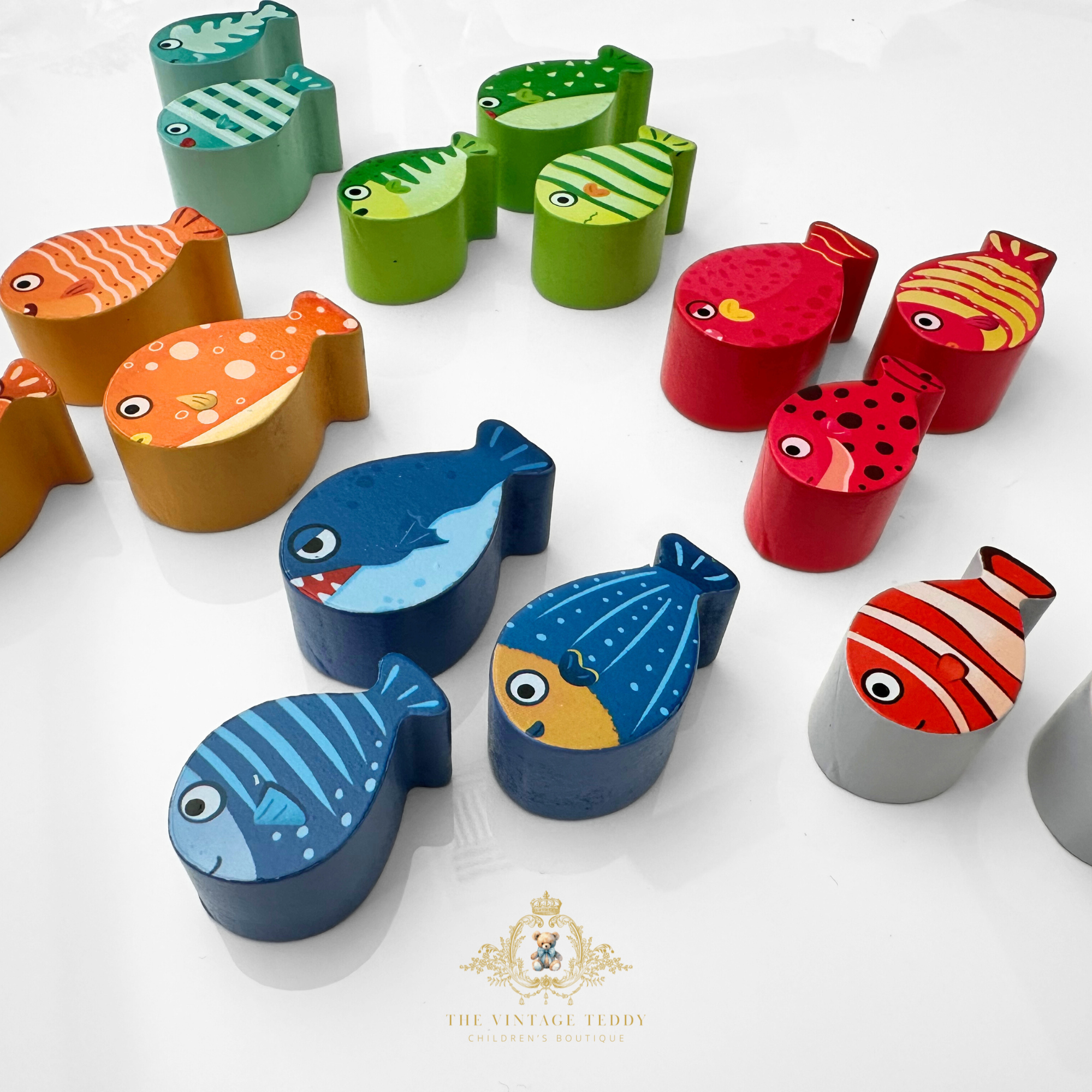 • Details: 1 Whale & 15 Fishies Character Made out of Wood, Colorful Colors, Hand Painted
