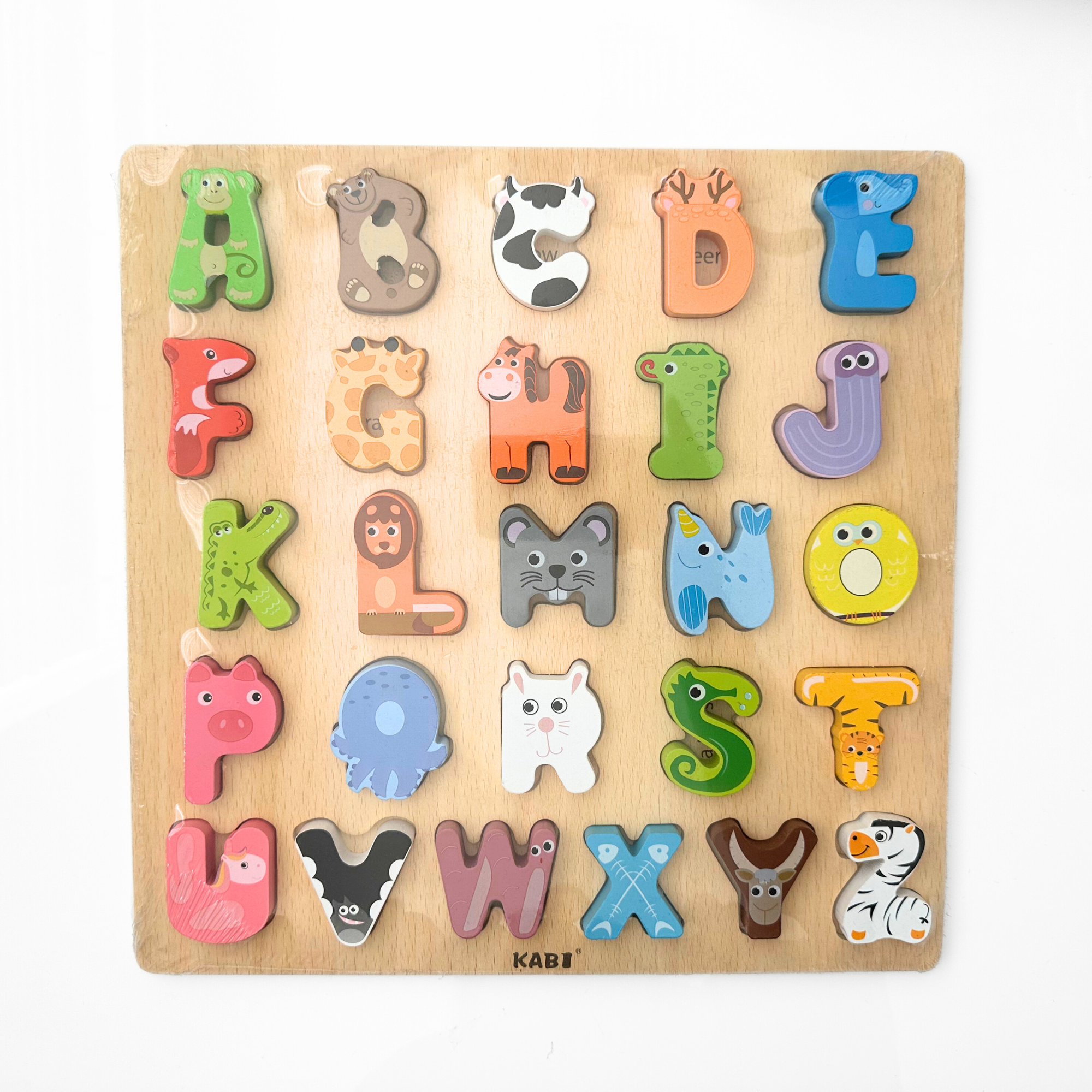 Children's Early Learning Cognitive Wooden Toys Alphabet Animal Characters Play Set