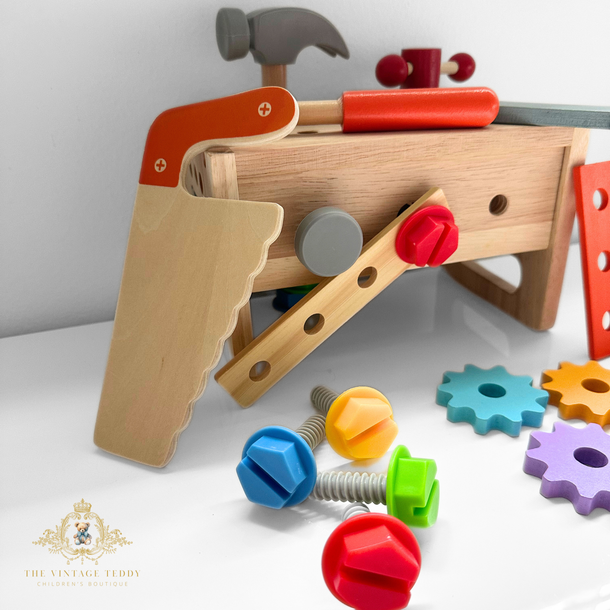 Children's Early Learning Cognitive Wooden Toys Toolbox Construction Activity Center Play Set