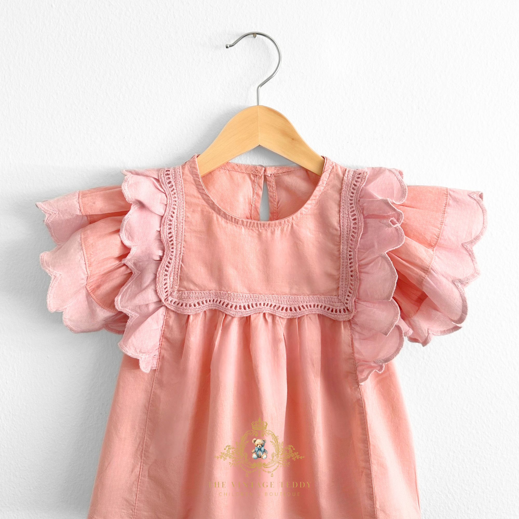Girls Blouse Lovely Ruffled Scalloped Cap Sleeves Bohemian Blush
