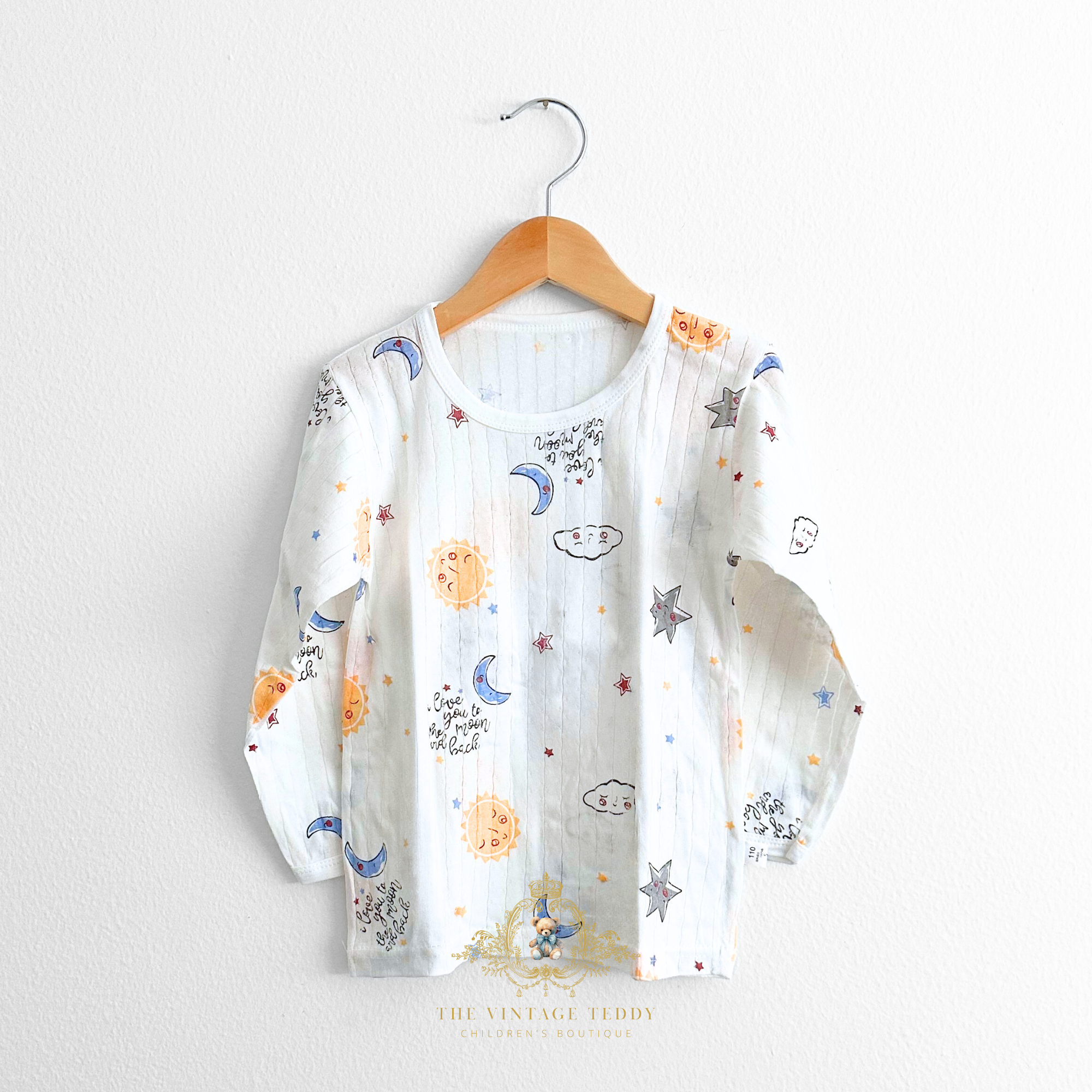 • Details: Soft, Breathable & Comfy, Moon, Sun & Stars Graphic Print, Long Sleeves, Long Pants, Round Neck Collar, Elastic Waistband